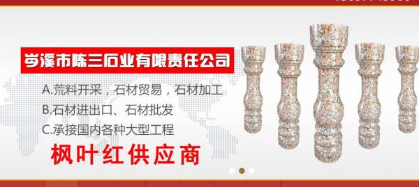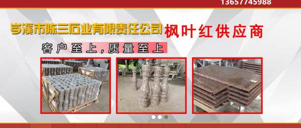 公司專業(yè)生產(chǎn)及開采廣西楓葉紅、廣西三堡紅、廣西浪花白、廣西海棠紅、廣西粉紅麻、廣西芝麻黑等優(yōu)質(zhì)花崗巖,擁有多名優(yōu)秀專業(yè)技術(shù)人員,是專業(yè)的楓葉紅供應(yīng)商。主營(yíng):荒料,高檔別墅,星級(jí)酒店,歐式工程石材,外墻干擋板,光面,荔枝面,火燒面。