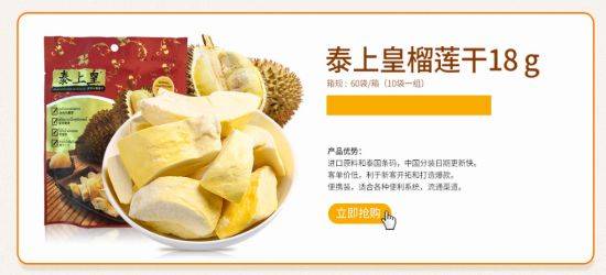 廣西泰上皇食品有限公司目前所銷售產(chǎn)品均是來自泰國合作工廠的一手貨源,目前主打產(chǎn)品有泰上皇金枕頭榴蓮干、泰上皇水仙芒果干(凍干食品),泰上一品芒果干(菲律賓7d風(fēng)味),準(zhǔn)備推出新品泰上一品椰子干、白咖啡,泰上皇榴蓮固體飲料(凍干)、水仙芒固體飲料(凍干)、椰子膠原蛋白固體飲料等產(chǎn)品,泰國產(chǎn)速凍金枕頭榴蓮肉,散裝飲料粉和品牌代加工均能供貨,門檻低,歡迎洽談代理合作。