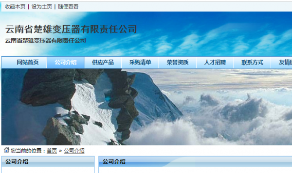云南省楚雄*壓器有限責(zé)任公司網(wǎng)站建設(shè)案例欣賞
