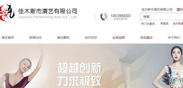 佳木斯市演藝有限公司是2013年7月在原市評劇團、京劇團、話劇團、歌舞團的建制基礎(chǔ)上經(jīng)文化體制改革后而整合成立的我省東部地區(qū)實力最強的專業(yè)文藝表演團體。公司融戲曲、戲劇、地方戲、歌舞于一體,使資源優(yōu)勢、人才潛能、演藝質(zhì)量在演出實踐中得以充分展示。其演藝形式多樣、?。ü?jié))目豐富新穎,既能組織、策 劃、演出大型戲劇、綜藝節(jié)目,又能以“輕騎兵”式的精煉小分隊深入基層,送戲下鄉(xiāng)。為促進文化大發(fā)展大繁榮,公司除經(jīng)營主業(yè)外,還興辦文化產(chǎn)業(yè)?,F(xiàn)正與省 職業(yè)藝術(shù)學(xué)院聯(lián)合籌建佳木斯藝術(shù)學(xué)校,培養(yǎng)專業(yè)藝術(shù)人才。京劇臉譜藝術(shù)工作室——藝品堂也于近日問世。公司懷著創(chuàng)作民族藝術(shù)精品,打造三江文化名城的史命感和責(zé)任感,不斷提升文化品位,為放飛中國夢提供正能量。