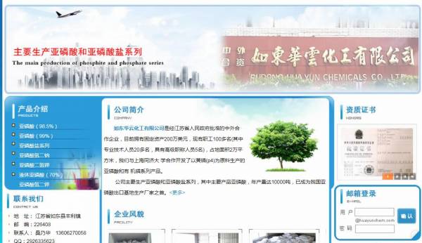如東華*化工有限公司選用我司企業(yè)化工原料行業(yè)的網(wǎng)站優(yōu)化產(chǎn)品,其SEO關(guān)鍵詞有 亞磷酸,南通亞磷酸,如東亞磷酸,液體亞磷酸。其特點是用很合適的展示方式、展示效果、站點框架,把客戶及其用戶很關(guān)心的問題突出表現(xiàn);并以簡潔明朗的設(shè)計風格,清晰展現(xiàn)公司水平實力,確保一秒抓住目標用戶眼球,給用戶留下良好的第一印象。如東華*化工有限公司成立于2003年,是經(jīng)如東市市場監(jiān)督管理局審核的有資質(zhì)的公司,其統(tǒng)一社會信用代碼:91320623752**6411N。公司地址:江蘇省如東縣豐利鎮(zhèn)。