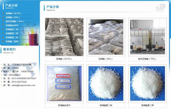 公司主要生產(chǎn)亞磷酸和亞磷酸鹽系列,其中主要產(chǎn)品亞磷酸,年產(chǎn)量達10000噸。我們與國內(nèi)50多家外貿(mào)公司合作,同時還自營出口。95%的高品質(zhì)亞磷酸產(chǎn)銷美國,英國,法國,德國,日本,韓國,加拿大,巴西,阿根廷,澳大利亞等國家。