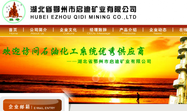 湖北省鄂州市啟迪礦業(yè)有限公司(原湖北省鄂州市獨(dú)峰化工有限責(zé)任公司), 始建于1979年,是中國石化,中國石油三劑產(chǎn)品定點(diǎn)生產(chǎn)供應(yīng)商,現(xiàn)有員工268人, 固定資產(chǎn)原值3896萬元,年規(guī)模銷售產(chǎn)值8000萬元,現(xiàn)擁有大中型機(jī)械設(shè)備180余 臺(tái)(套),是湖北省星火示范企業(yè)、著名商標(biāo)單位,歷屆省、市重合同、守信用單位 及全面質(zhì)量管理達(dá)標(biāo)單位。